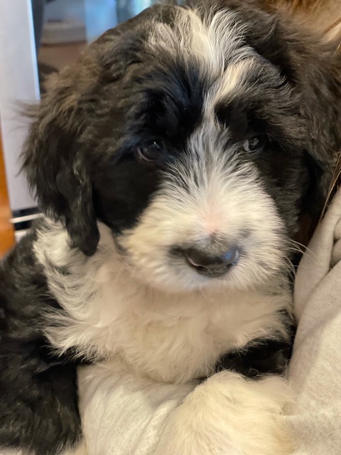 We still have people stop their cars just to say how beautiful he is and ask questions. Everyone thinks he is a Bernadoodle and we explain he is not! I actually have a colleague who I just shared your website with because I think she may want to get one of your BWD pups. She has 2 Porties.